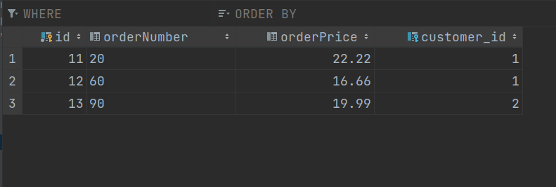 <== Columns: cid, name, age, oid, orderNumber, orderPrice, customer_id