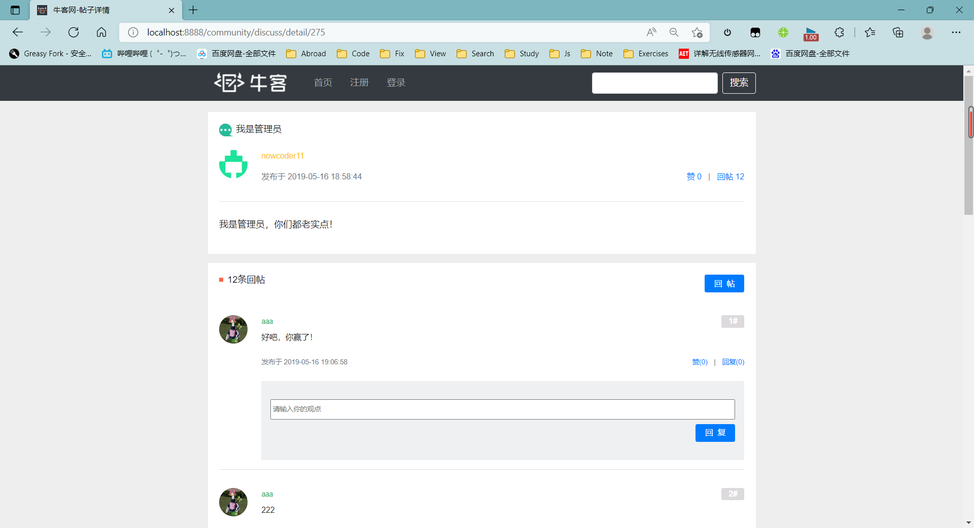 这个项目的整体结构来源于牛客网,主要使用了Springboot、Mybatis、MySQL、Redis、rabbitmq、等工具。主要实现了用户的注册、登录、发帖、点赞、系统通知、按热度排序、搜索等功能。另外引入了redis数据库来提升网站的整体性能,实现了用户凭证的存取、点赞关注的功能。基于 rabbitmqF 实现了系统通知:当用户获得点赞、评论后得到通知。利用定时任务定期计算帖子的分数,并在页面上展现热帖排行榜。
