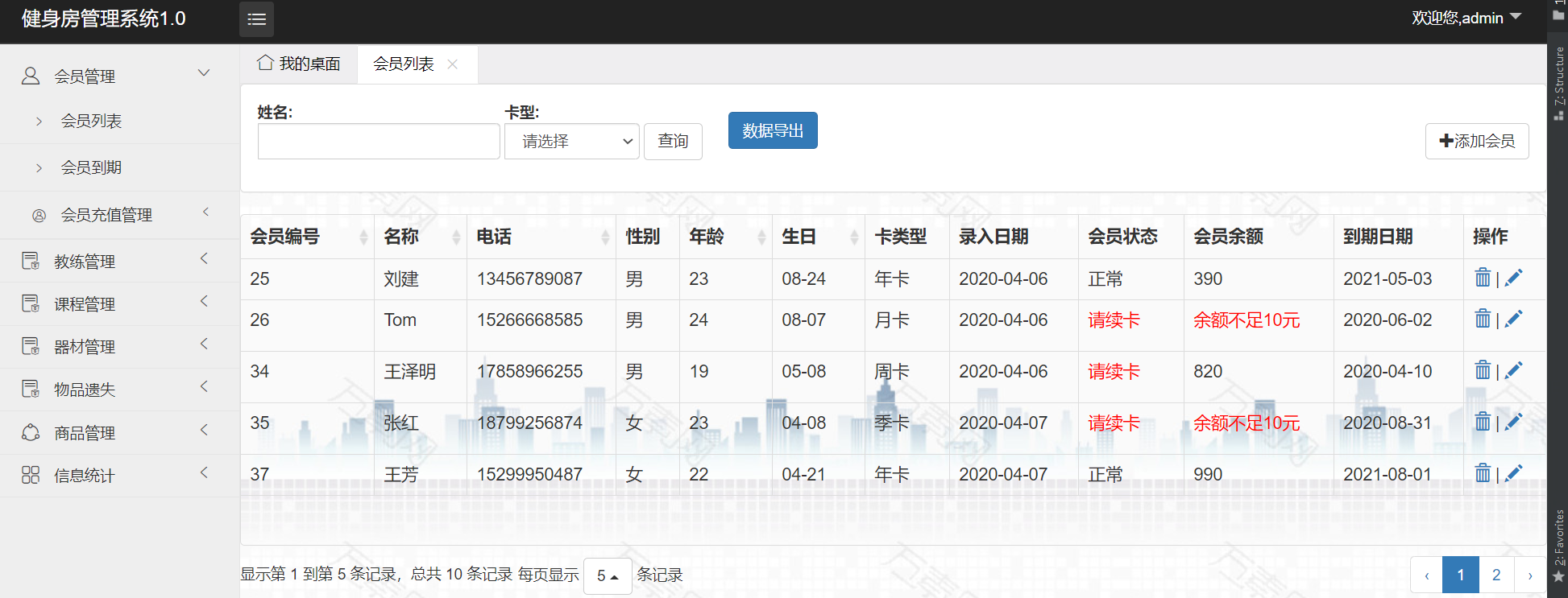 基于Springboot开发的健身房管理系统