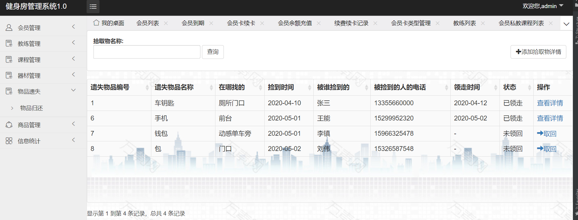 - 物品遗失管理模块
